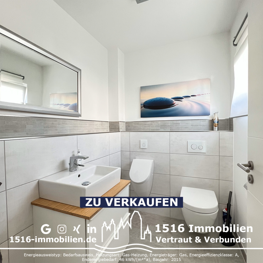 Energieausweis: Energiebedarfsausweis, Wesentliche Energieträger: Gas, Endenergiebedarf: 46 kWh(m²*a), Energieverbrauch für Warmwasser enthalten, Energieeffizienzklasse: A, Ausstellungsdatum: 23.01.2018, Gültig bis: 22.01.2028, Baujahr (gemäß Energieausweis): 2015, Wesentliche Energieträger: Gas