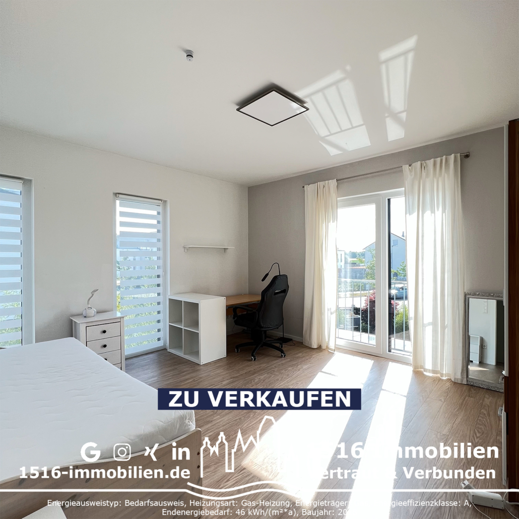 Das Hauptschlafzimmer überzeugt durch einen eigenen Balkon, sowie der Besonderheit eines begehbaren Kleiderschranks in komfortabler Größe.